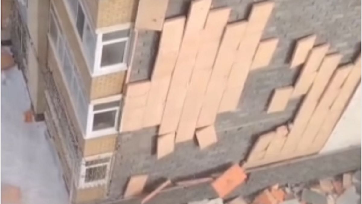 “Cephe çöktü”: Astana'da kuvvetli rüzgar nedeniyle yüksek katlı bir binanın izolasyonu çöktü (video)