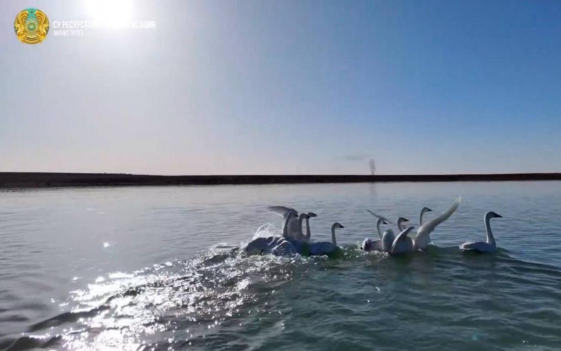 Стаю лебедей засняли на водохранилище «Бесарык» в Кызылординской области