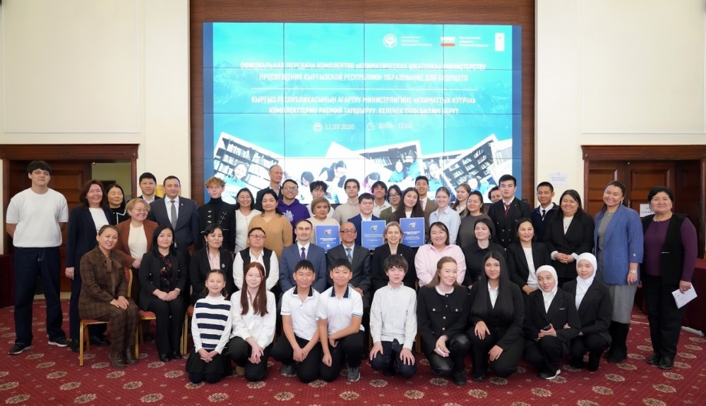В Бишкеке 11 марта состоялось официальное мероприятие, в ходе которого Программа развития ООН (ПРООН) передала Министерству просвещения Кыргызской Республики обновленные учебно-методические комплекты "Климатическая шкатулка". Встреча объединила представителей госорганов, дипломатов, педагогов и сами